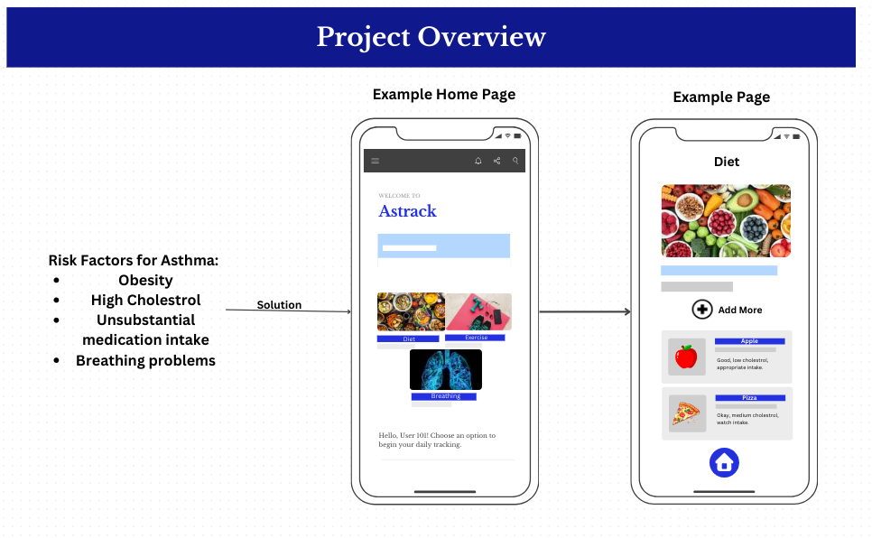 Asthma is a chronic respiratory condition that causes inflammation in the lung airways, known as the bronchial tubes. Asthma causes the bronchial tubes to tighten, and air is unable to reach the lungs, making it difficult to breathe. This condition affects all age groups, but young children and older adults are particularly vulnerable. Asthma is the leading cause of children’s absenteeism from school. Without proper treatment, asthma can worsen and lead to permanent lung damage. Although there is no cure to asthma, there are treatments such as inhalers and oral medications that help manage asthma by expanding the bronchial tubes. However, the risk factors of asthma are commonly overlooked. Studies have proven direct correlations of certain risk factors to asthma, such as obesity and allergies. By monitoring these risk factors and treating them accordingly, we can mitigate the effects of asthma attacks. Therefore, Astrack is introduced as a comprehensive app to manage asthma. Astrack is a convenient, user-friendly app that monitors an individual’s asthma patterns and recommends lifestyle changes accordingly. Astrack mainly focuses on three internal factors: diet, exercise, and breathing patterns and three external factors: weather, pollen, and air quality alerts from authorized sources. By tracking these factors, Astrack recommends simple precautions that can be taken. Astrack has the potential to benefit millions of people who suffer from asthma. It would especially help parents with managing their kids’ asthma attacks by monitoring and making simple changes in their children’s daily lives.